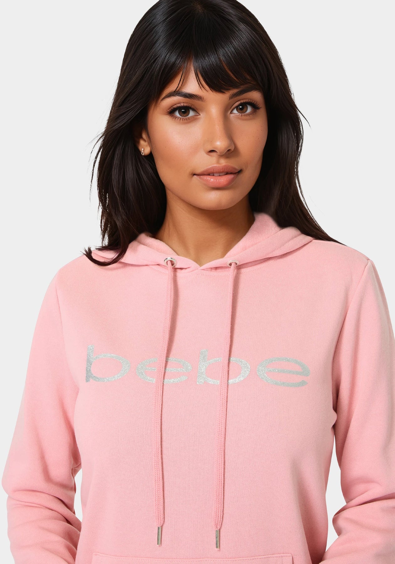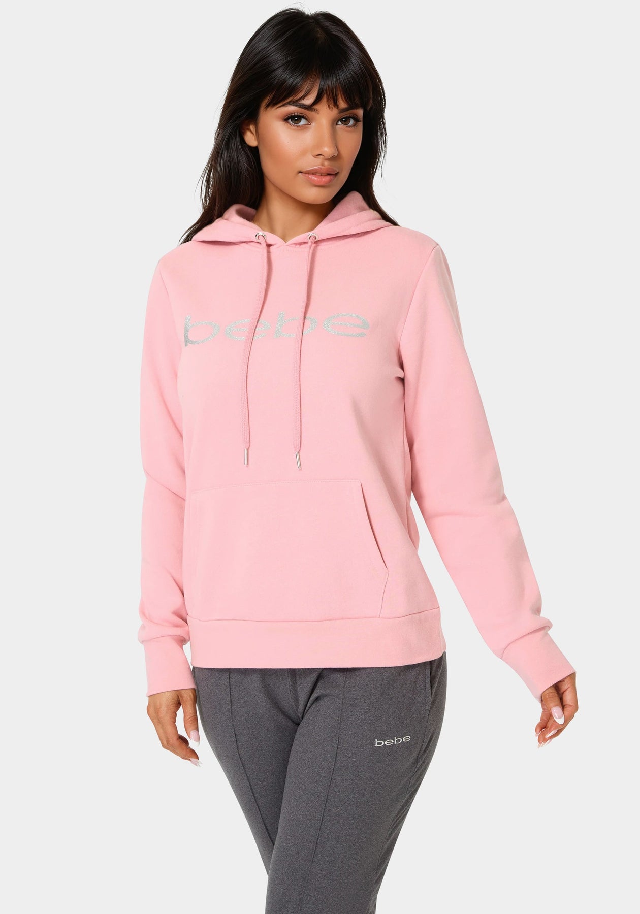 A cozy fleece hoodie with a glitter logo detail that brings just the right amount of sparkle to your casual wardrobe.
