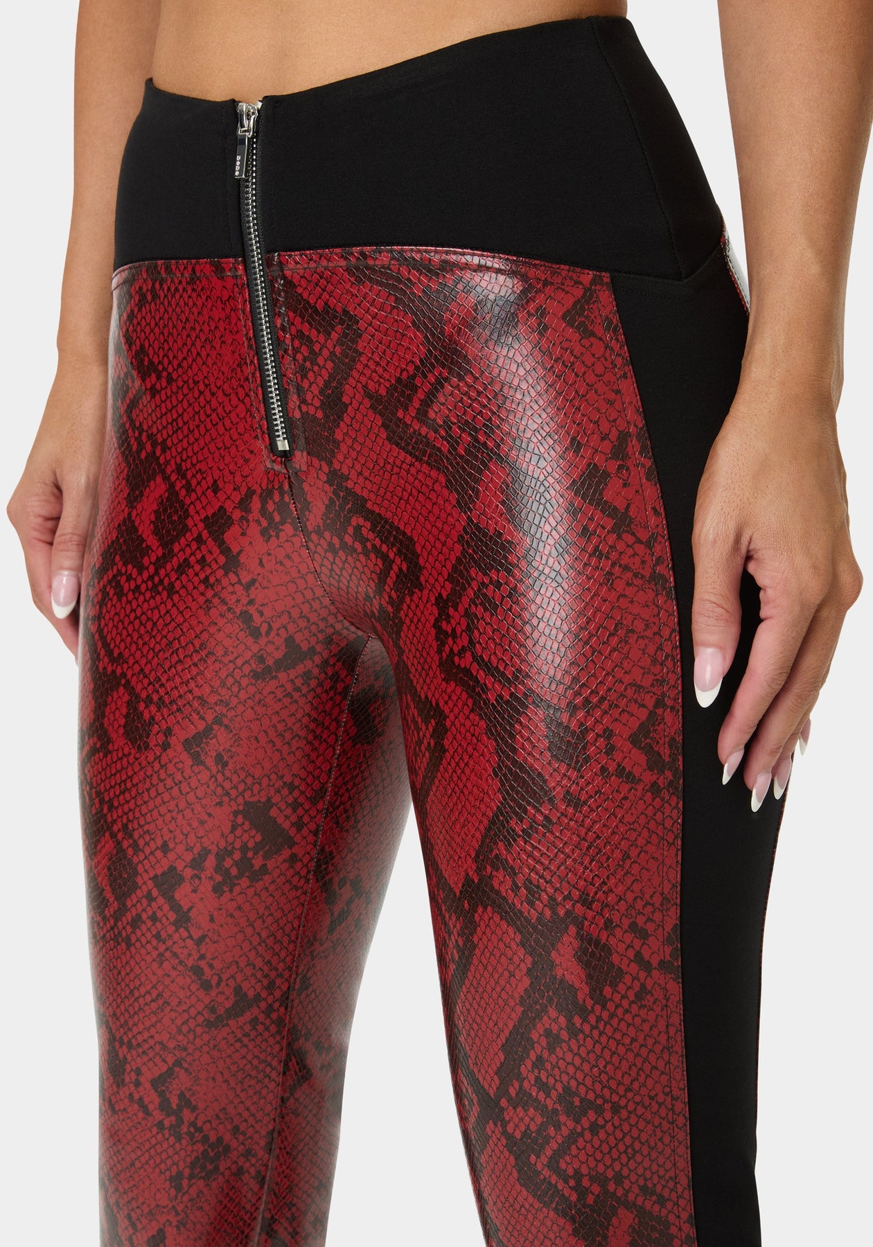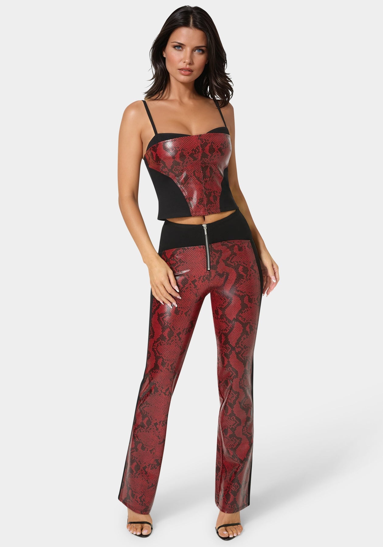 Mini flare pants with a high waist and snake skin print; a bold choice for day or night outings.