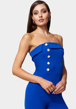 Knit Crepe Strapless Button Detail Wide Leg Jumpsuit