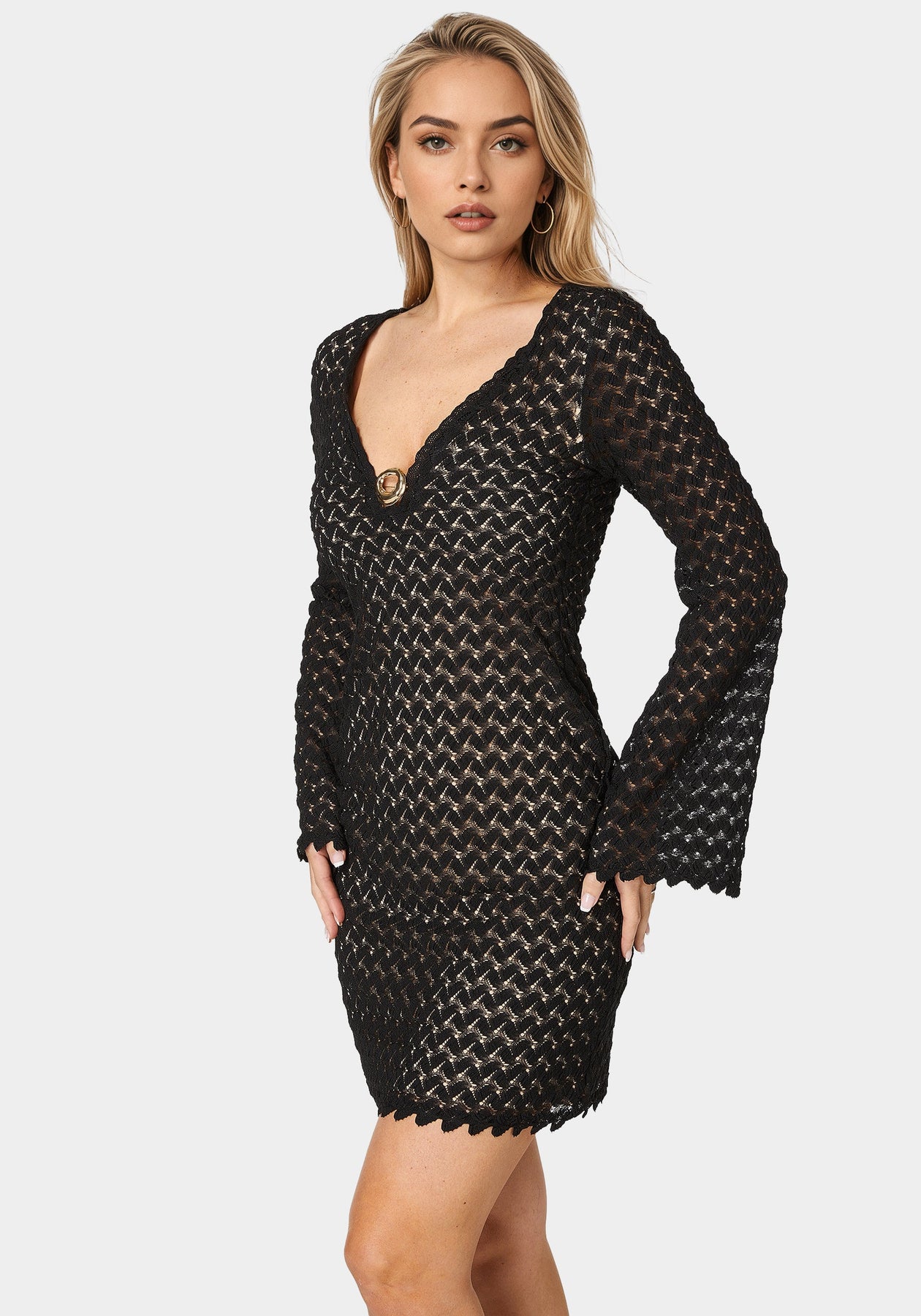 Flaunt dramatic bell sleeves and delicate lace at brunch or date nights—this mini says you're here for a vibe.