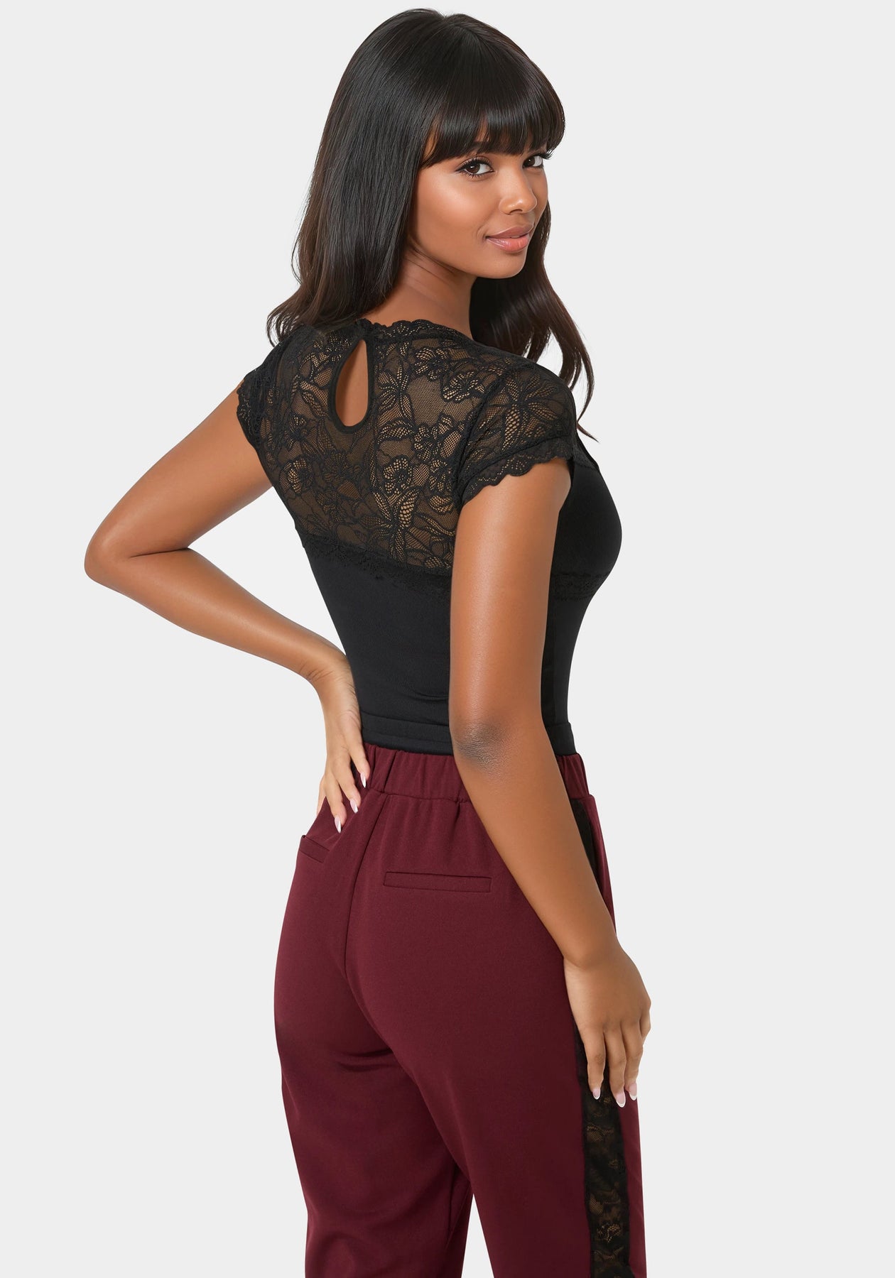 Charming lace cap sleeves meet rib knit comfort; ideal for casual brunches or easy-going celebrations.
