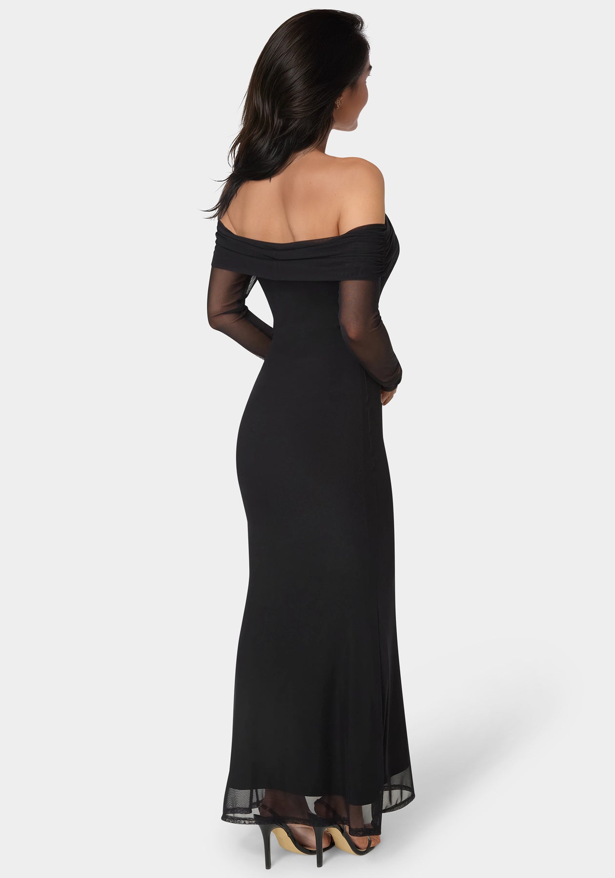Long Sleeve Off the Shoulder Mesh Maxi Dress