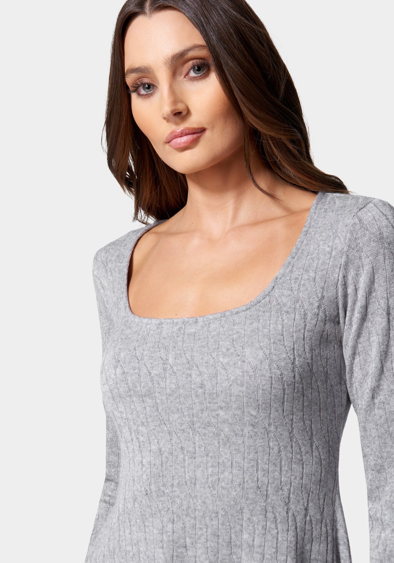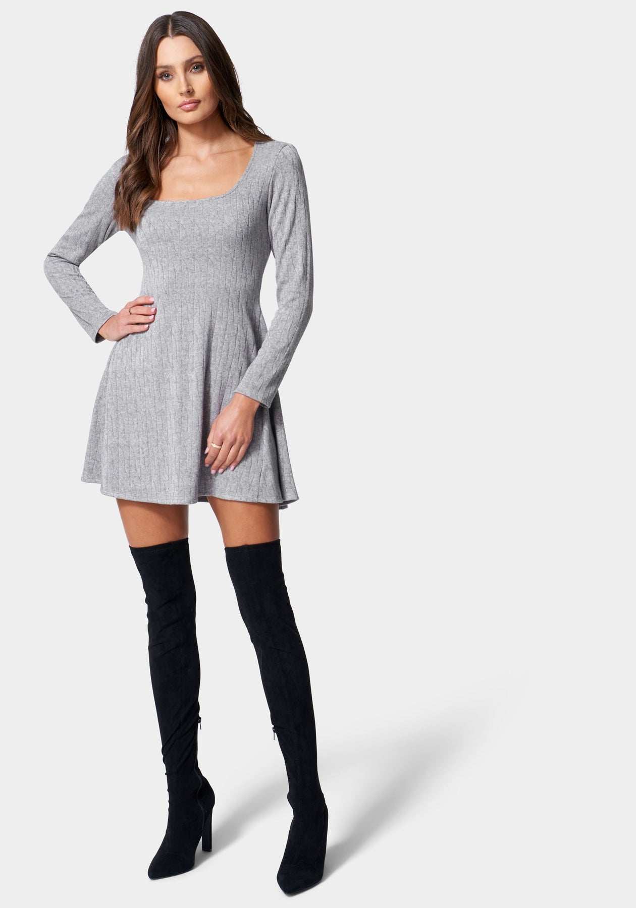 Hello, Fall wardrobe essential. Designed in a cozy luxe sweater knit, this perfect pull-on midi dress features a square neckline, drapey skirt, and ribbed sweater motif that can be dressed up or down.
