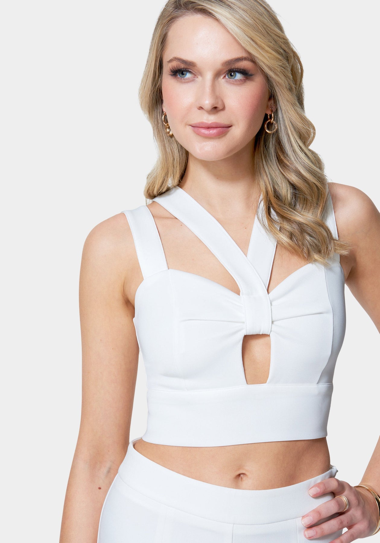 A modern twist on a classic silhouette, this Multi Strap Front Keyhole Knit Top gives you the right amount of sultry allure. Featuring an exposed zipper at the back, this piece pairs just as perfectly with our coordinating pants as it does your best fitting jeans.