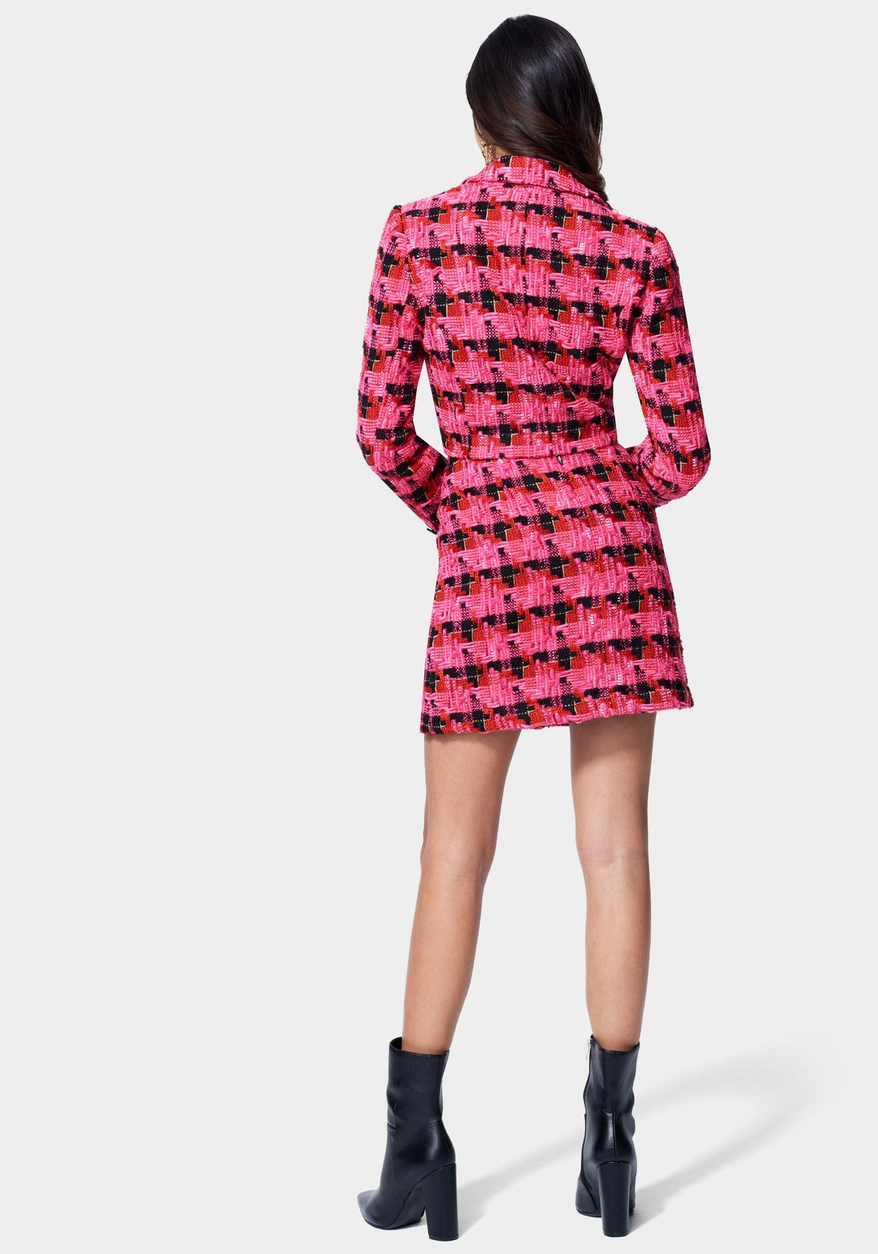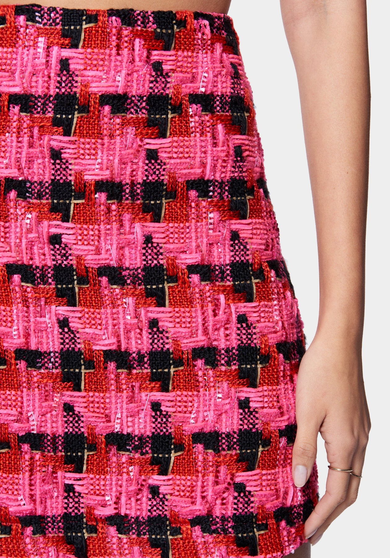 The 90's called. This pink multi tweed skirt boasts a high-waisted A-line shape, finished with a concealed back zipper. Pair with the matching cropped jacket for the complete look!