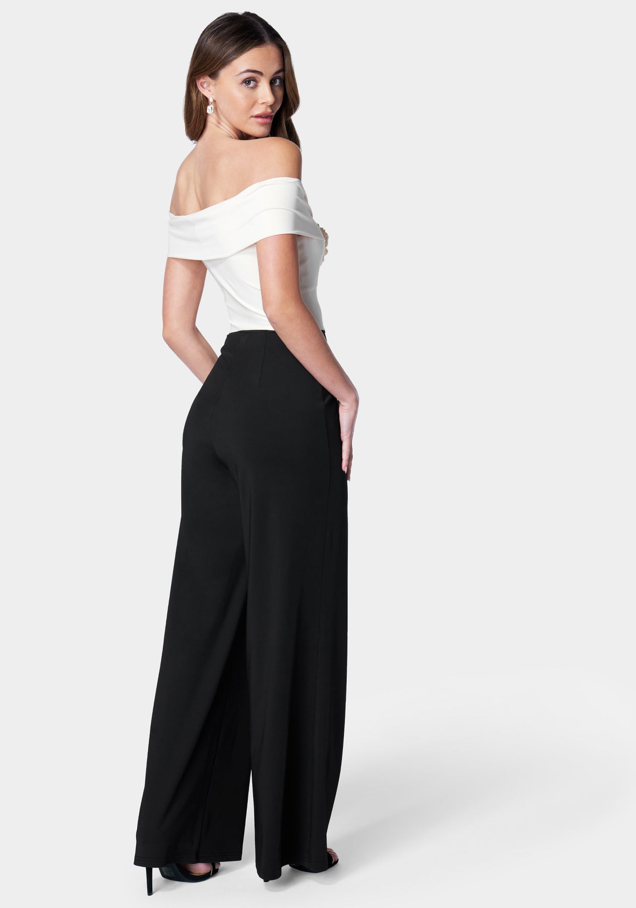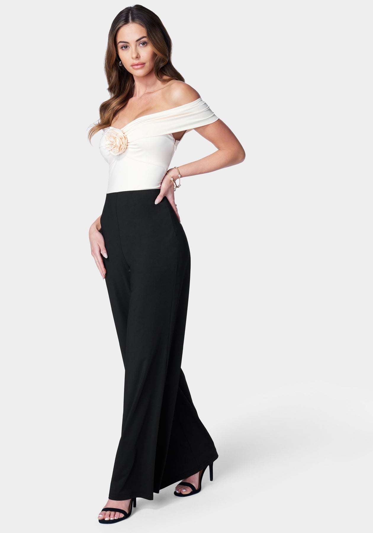 Steal the show with this off-shoulder jumpsuit. The rosette design enhances the elegance, while the off-shoulder style speaks volumes about your fashion-forward aesthetic.