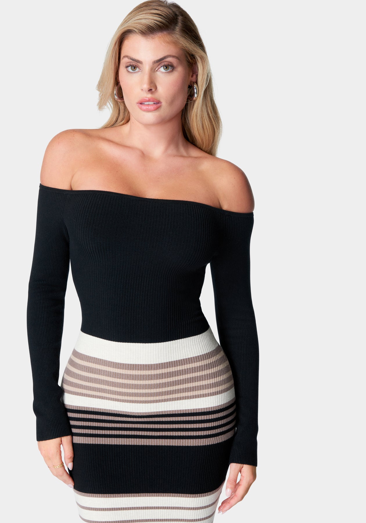 Off Shoulder Stripe Midi Dress