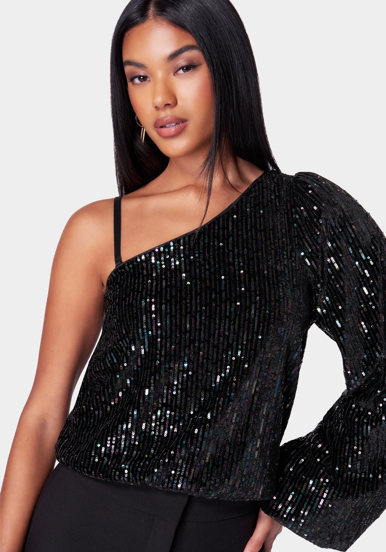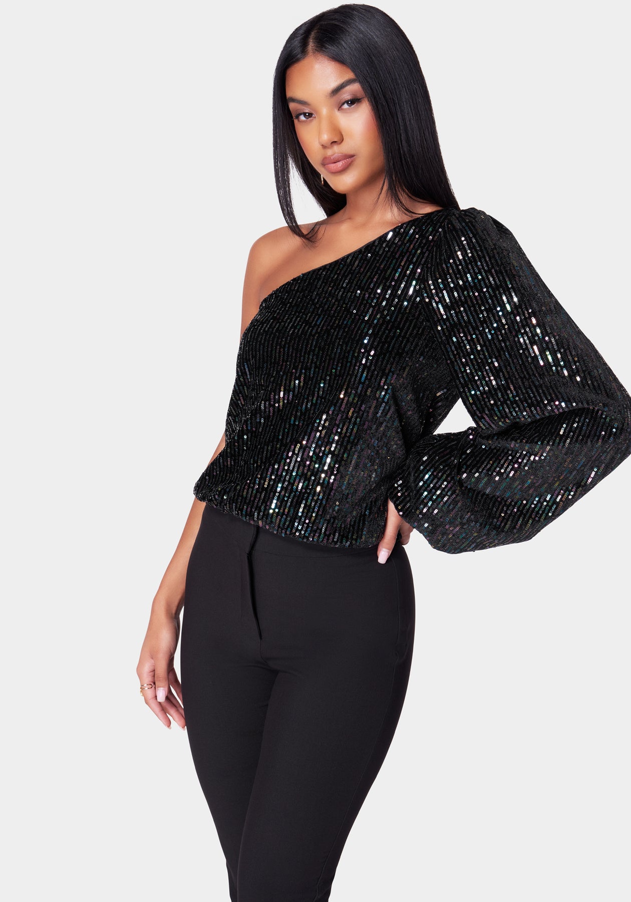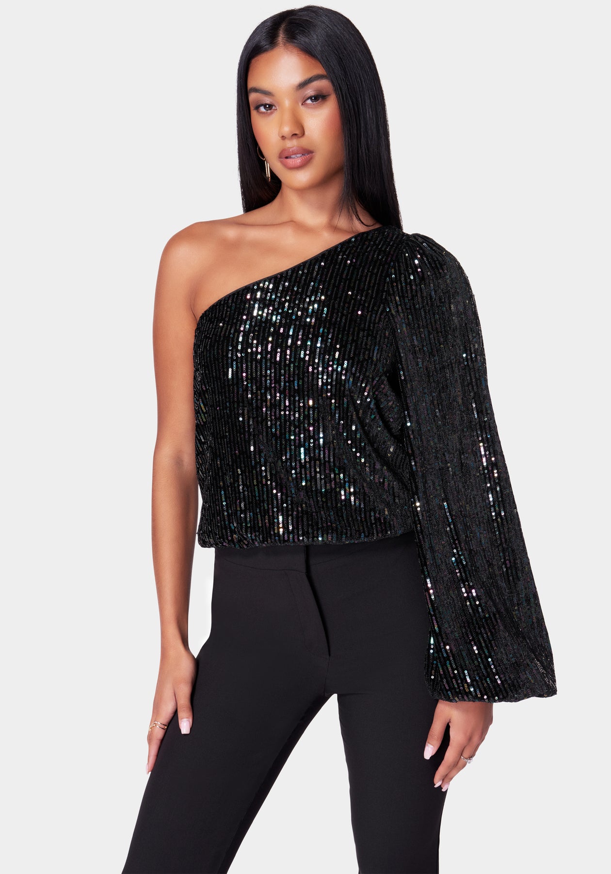 Make a statement with this one-shoulder blouse boasting multi-color balloon sleeves. Combining an eclectic design with comfort, it's perfect for adding a pop of color to your outfit. Pair with simple bottoms to let the blouse shine.