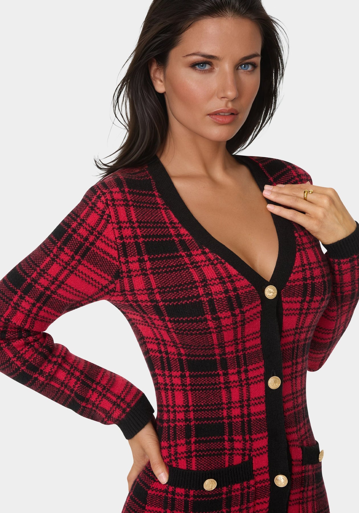 This dress features a V-neckline, long sleeves, and a button-down front in a preppy plaid design. A great pick for fall gatherings, workdays, or effortlessly stylish weekends.