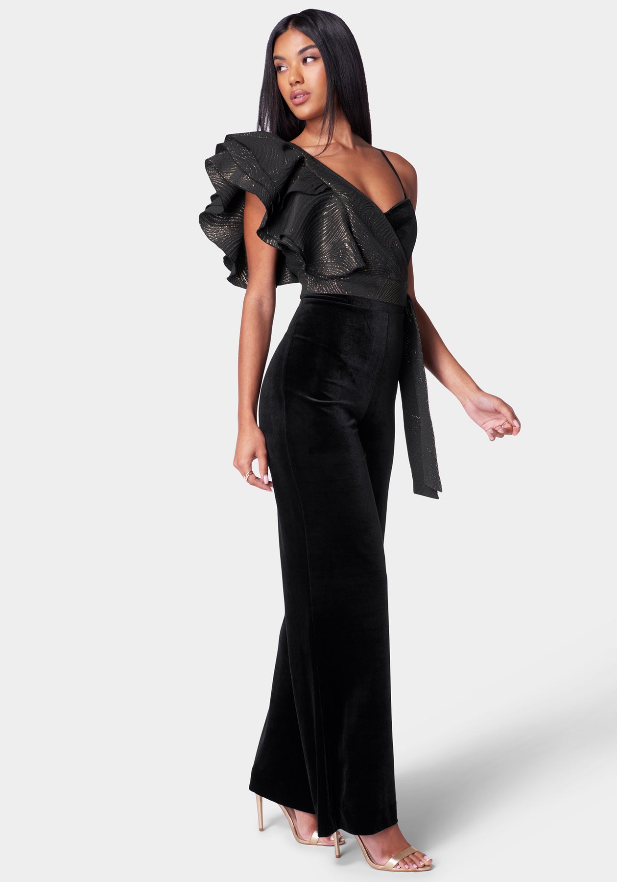 Exude versatile elegance with our removable ruffle top wide leg jumpsuit. This eye-catching piece features a flattering wide leg design that elongates your figure, along with a removable ruffle top, offering you the flexibility to change your look with ease.