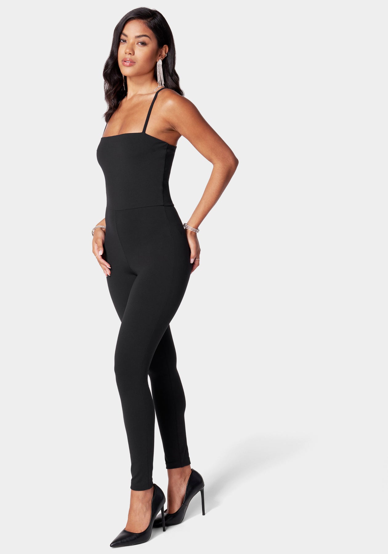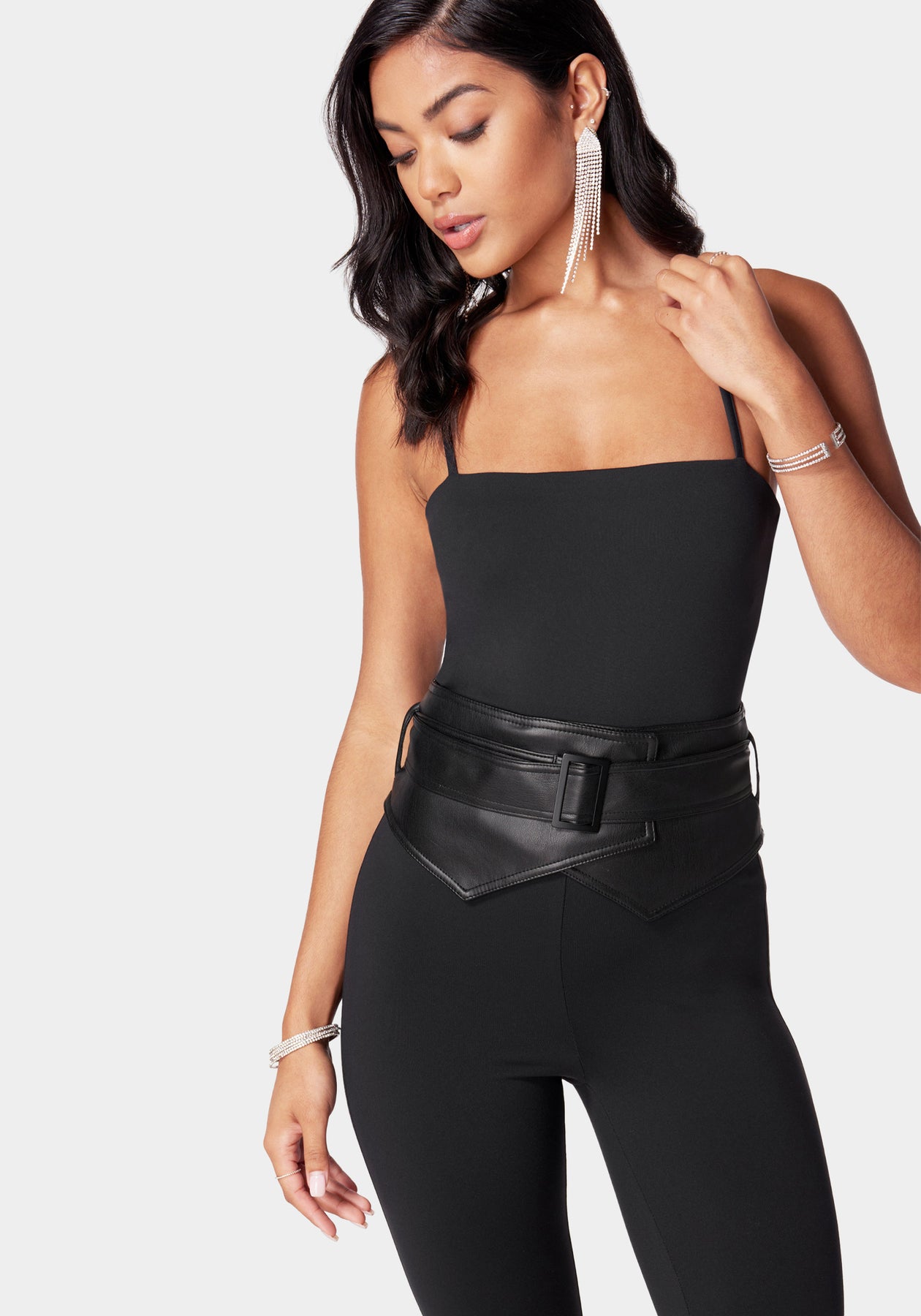 Step into sleek style with our removable vegan leather belt catsuit. Crafted from comfortable material, this one-piece features a body-skimming silhouette, boosted by a vegan leather belt for added shape. The belt is removable, offering versatility in styling.
