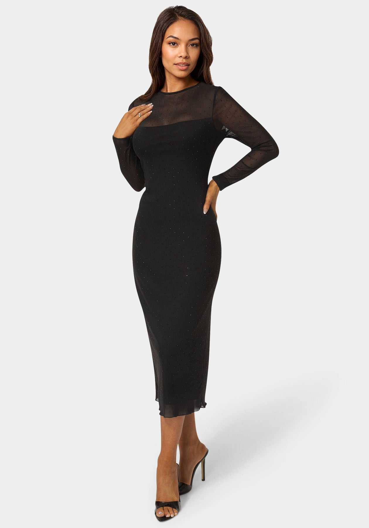 Rhinestone Mesh Long Sleeve Maxi Dress