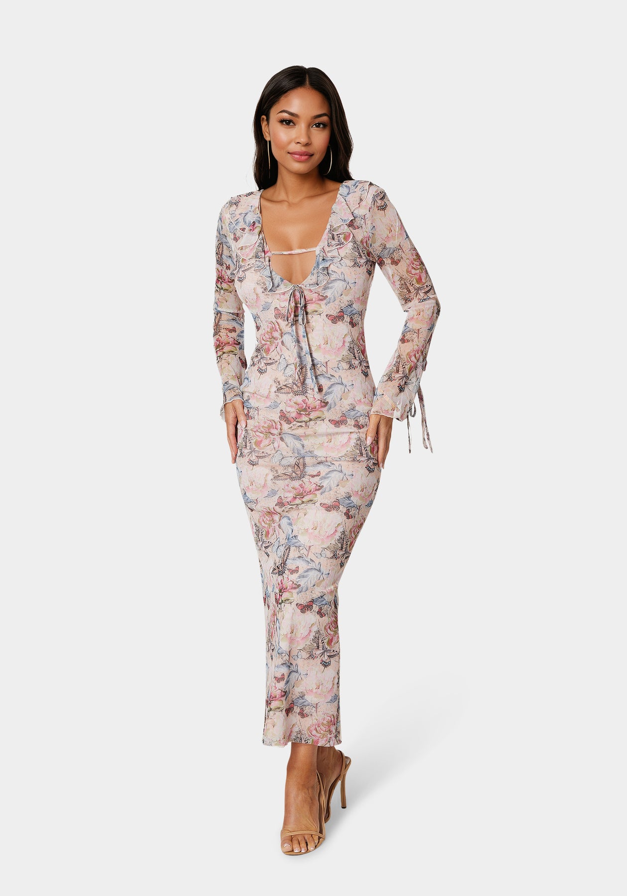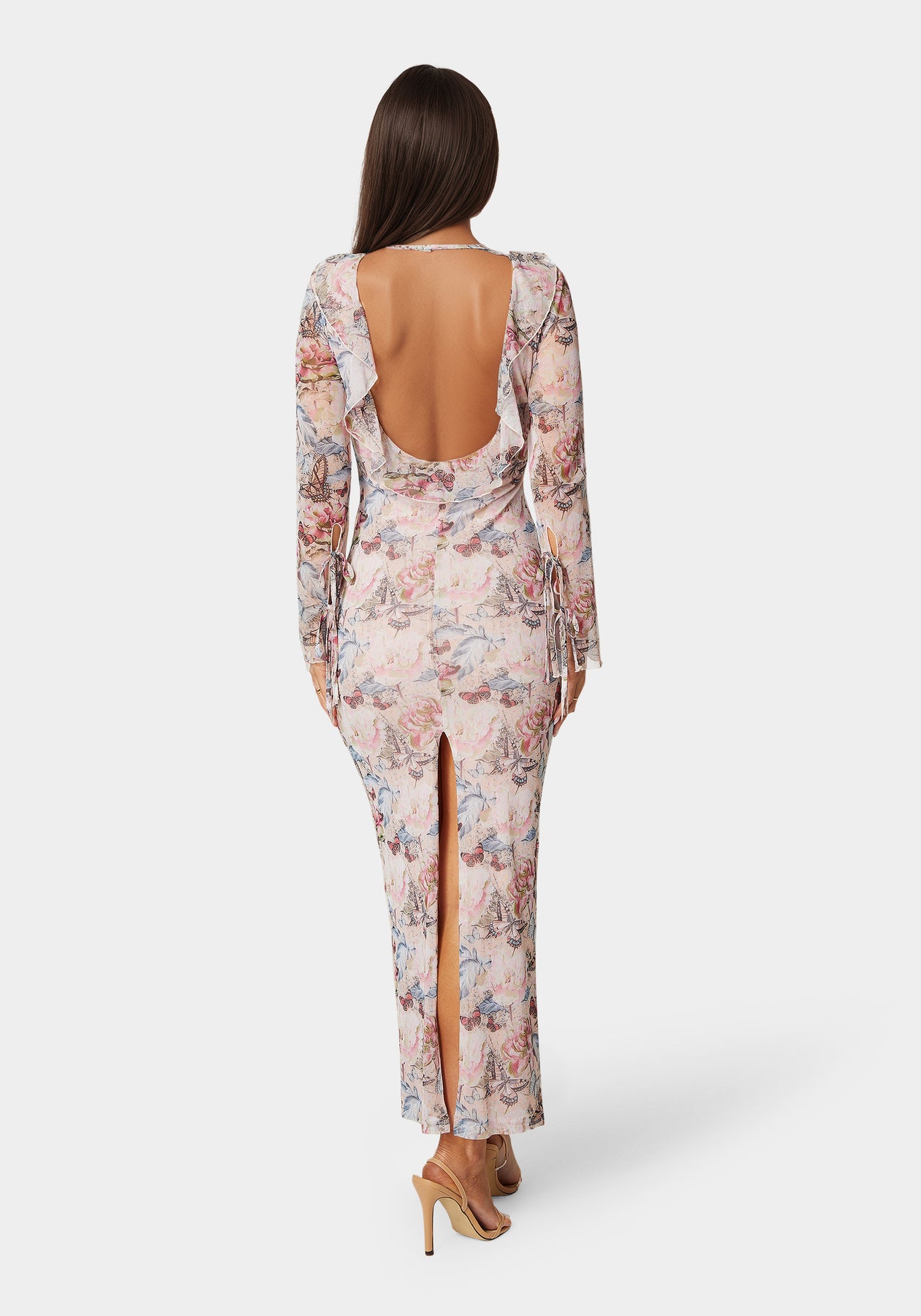 Make an entrance with this mesh maxi, adorned with delicate ruffle details. Its floor-length design adds flow and drama, making it the perfect companion for weddings, galas, or romantic evenings under the stars.