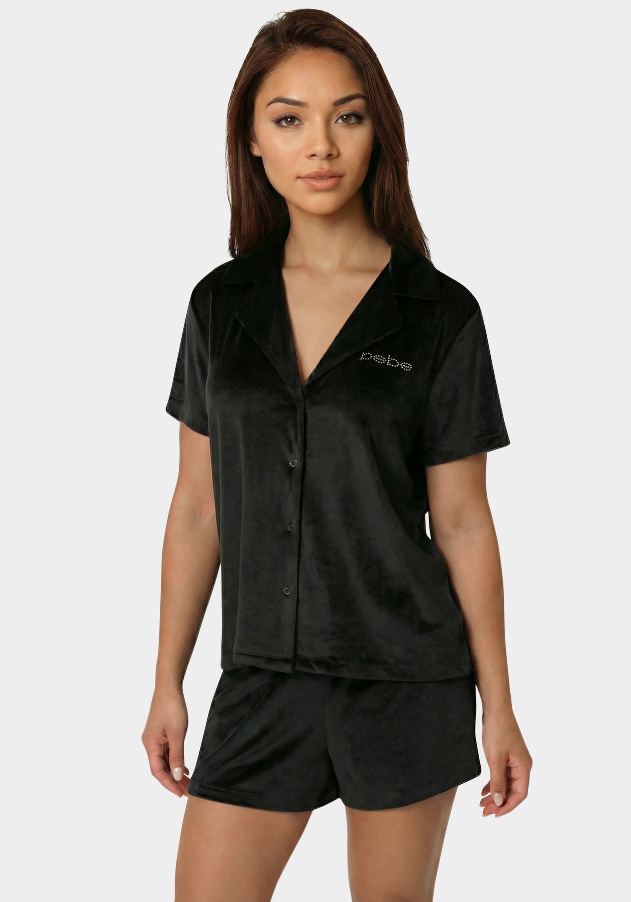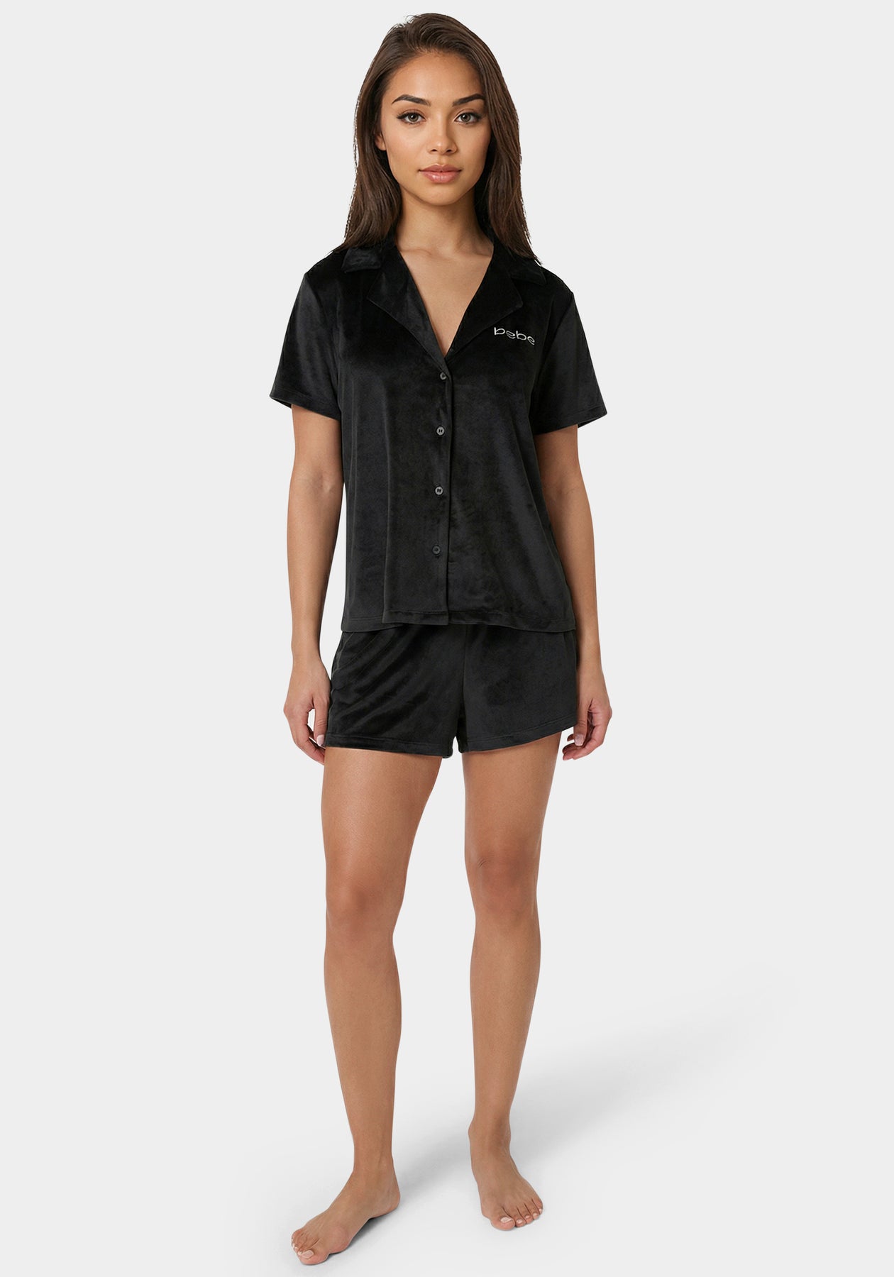2pc Velour Super Soft Notch Collar Lounge Short Set
