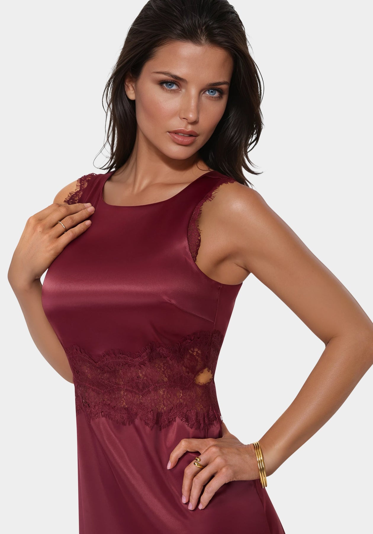 Featuring satin fabric and lace inserts, this sleeveless midi dress is an elegant pick for date nights or formal celebrations where you want a classic, refined look.