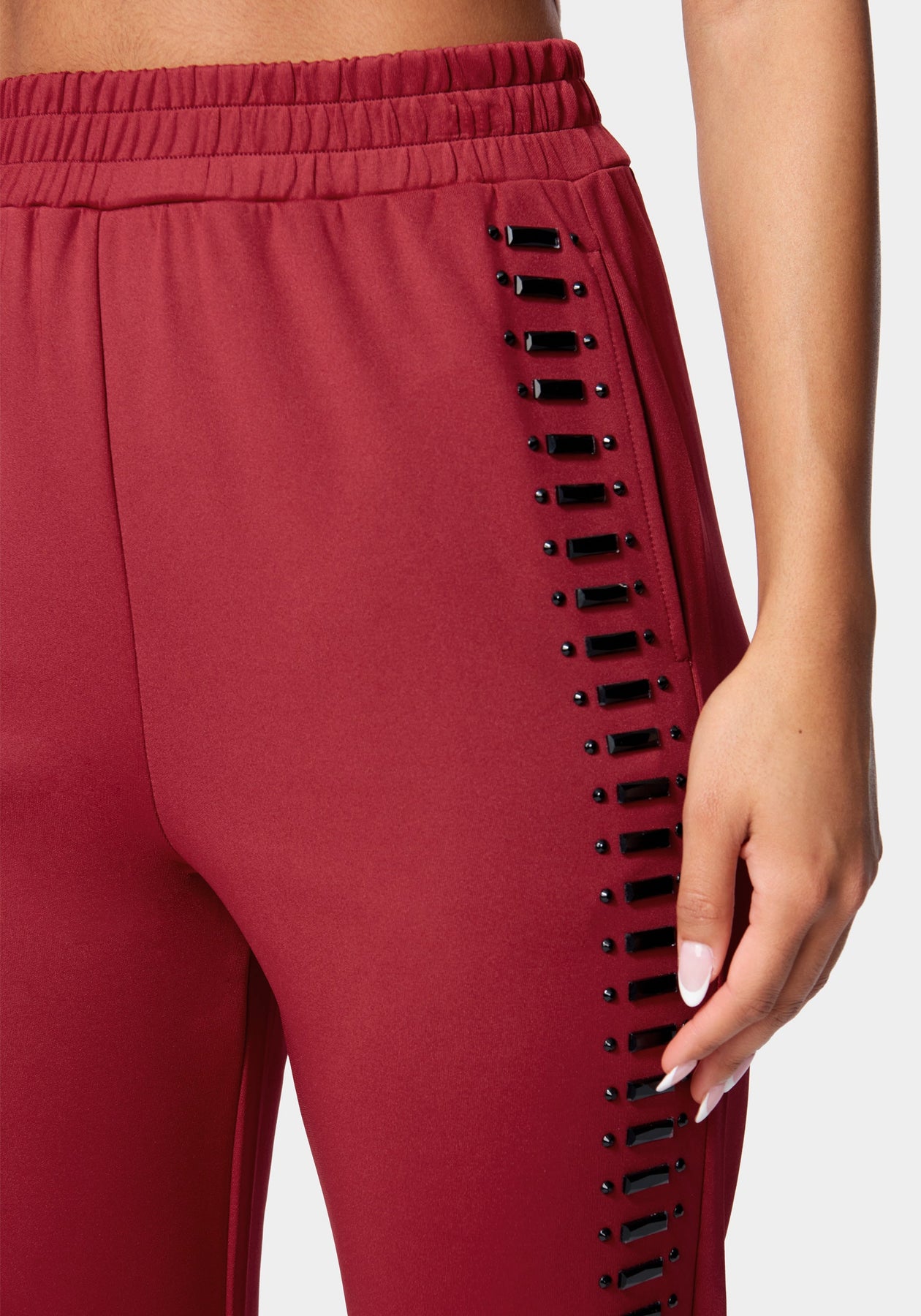 Work it out. This is a scuba knit jogger featuring gemstone embellishments, a drawstring waistband, and front slip pockets. Pairs perfectly with the Scuba Embellished Zip Up Hoodie.