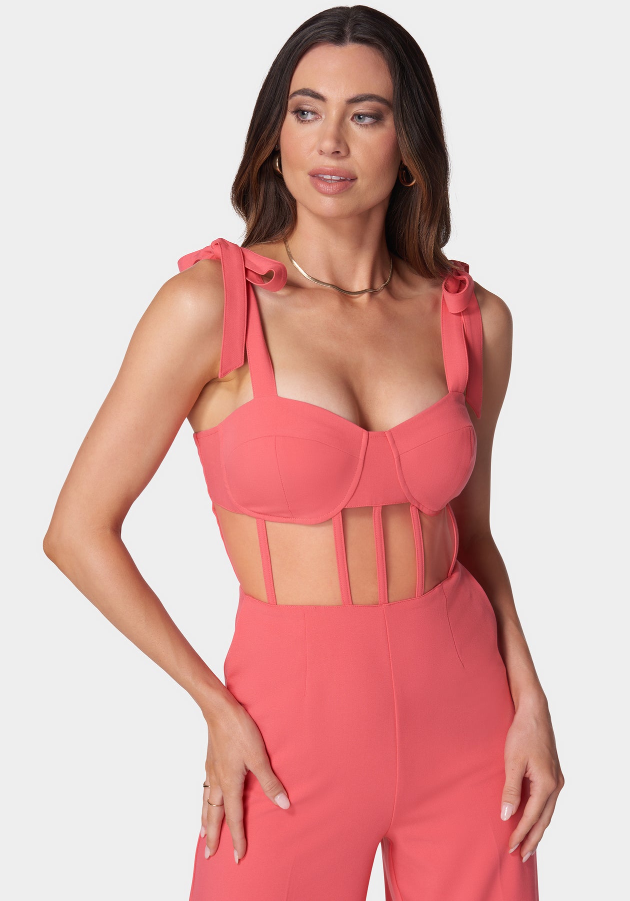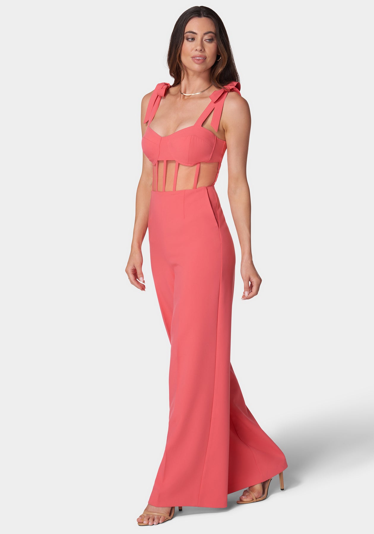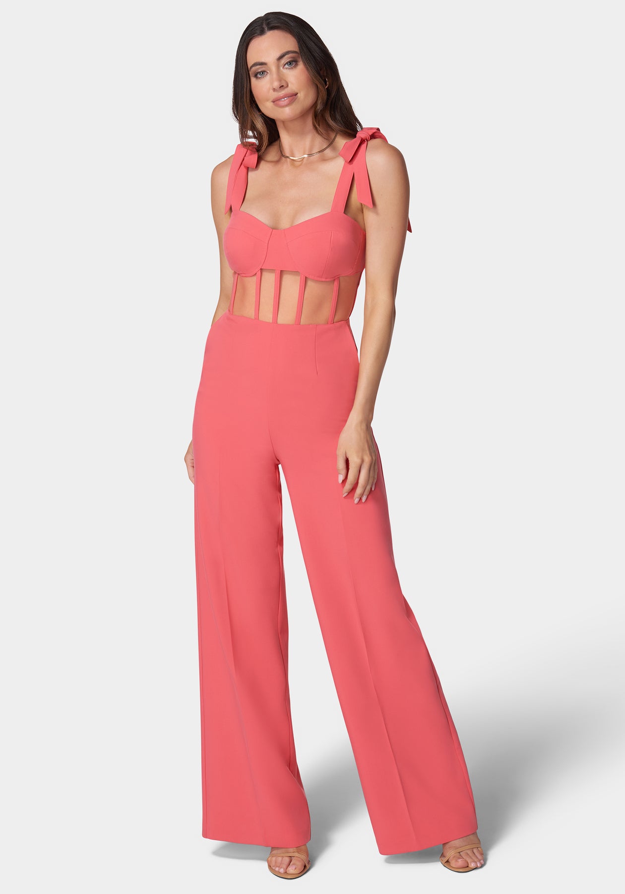 Self Tie Strap Corset Wide Leg Jumpsuit