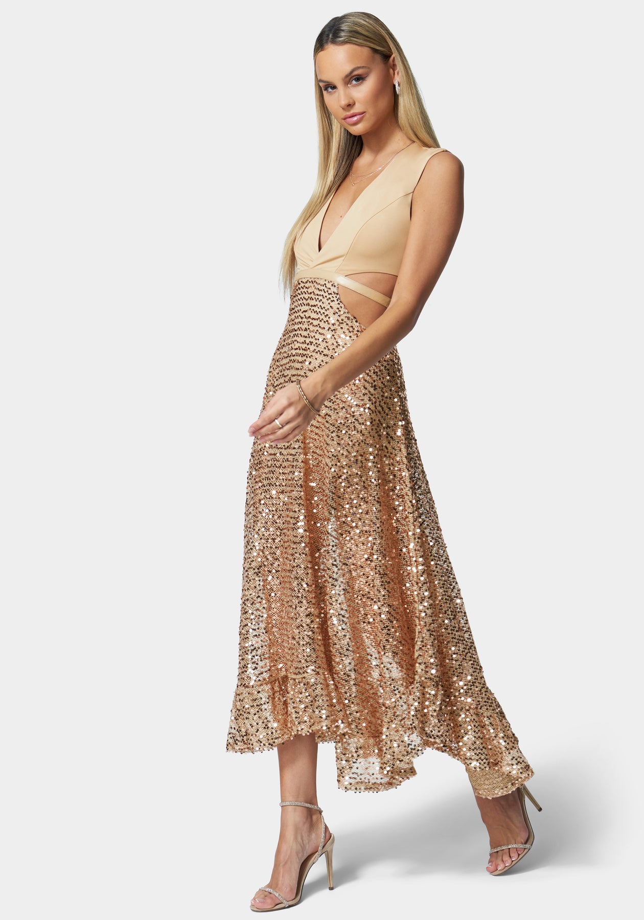 Showcase your glam side in this effortlessly daring Sequin Mesh Gown designed with just the right amount of shine and look-at-me cutouts.