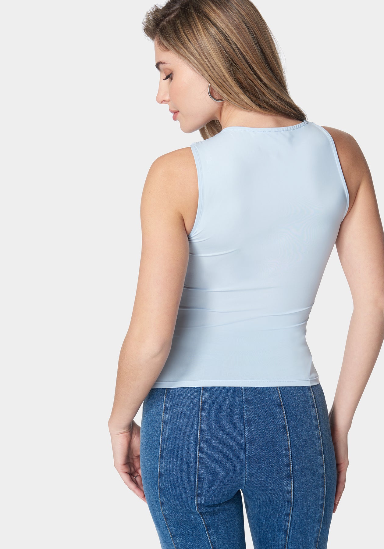 Embrace effortless sophistication with our Slit Front Ruched Top in Chambray Blue. The unique slit front design adds a sultry touch, while the ruched detailing accentuates your curves. Perfect for a casual outing or a night on the town.