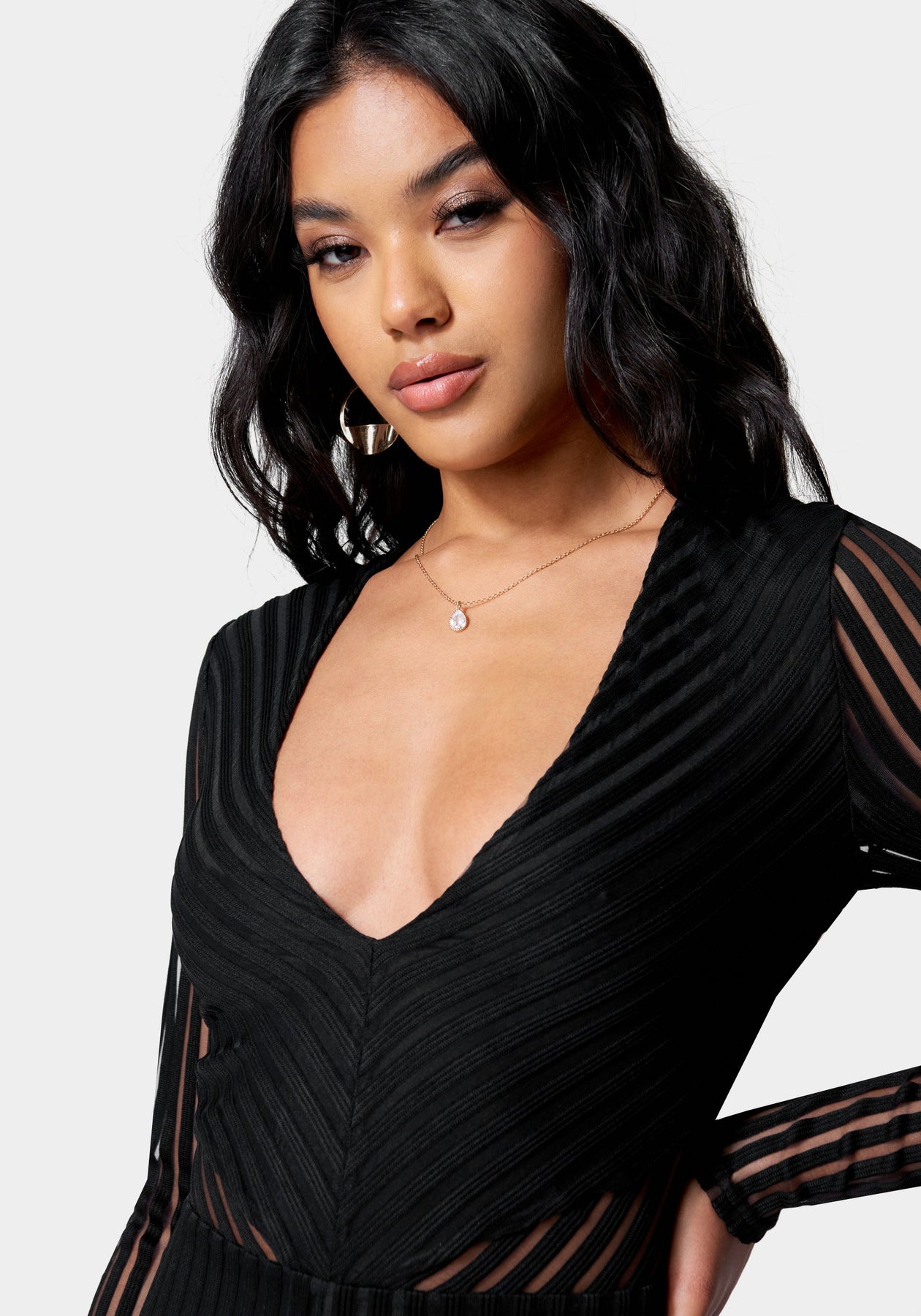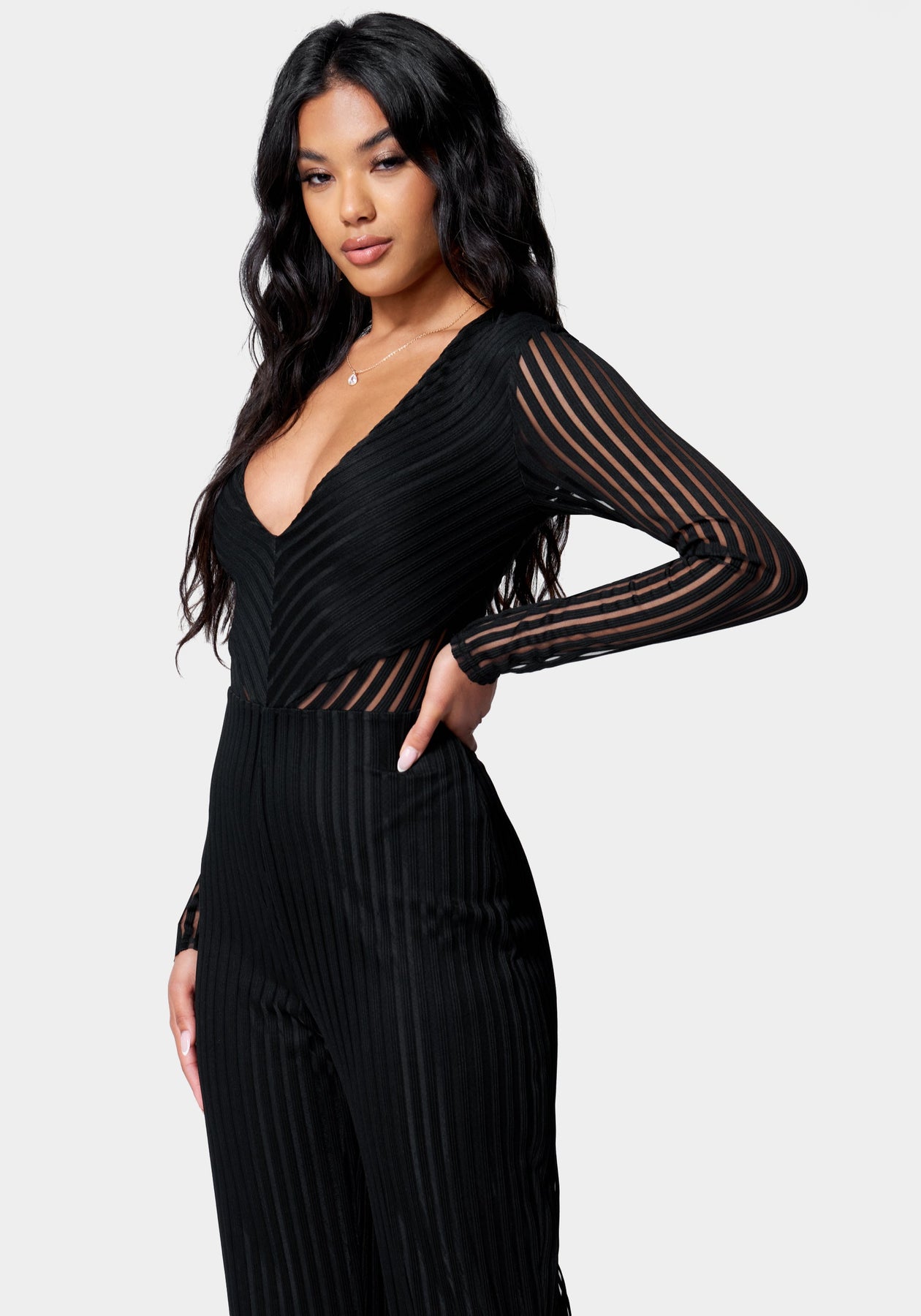 Make a lasting impression with the stripe mesh illusion jumpsuit. This unique design blends the sleekness of stripes with the intrigue of mesh illusion detailing. The result is a fashion-forward jumpsuit ideal for those events where you want to stand out. With its combination of style and comfort, the stripe mesh illusion jumpsuit is a daringly different addition to your closet.