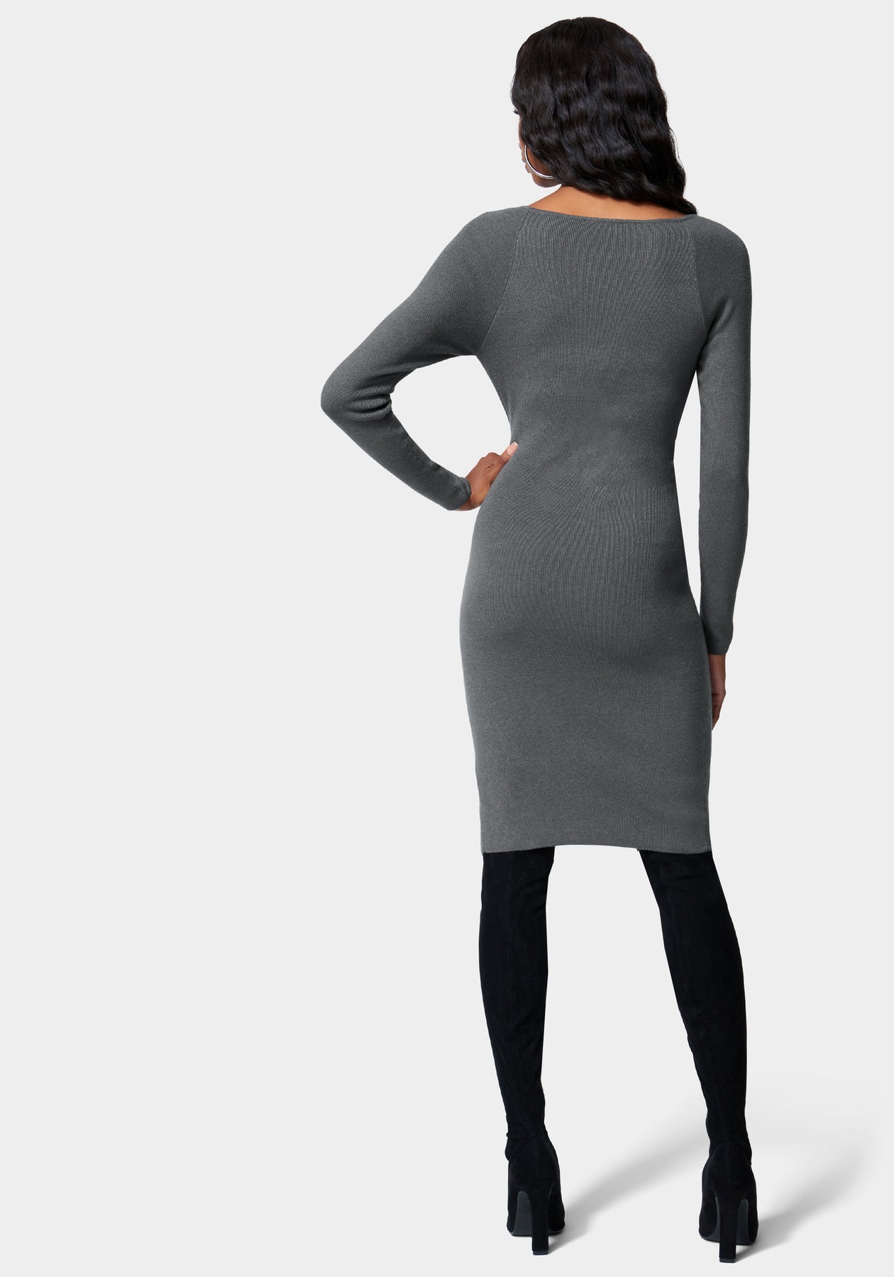 Hello, Fall wardrobe essential. Designed in a cozy luxe sweater knit, this perfect pull-on midi dress features long sleeves, v neckline, and a button down skirt with adjustable slit that can be dressed up or down.