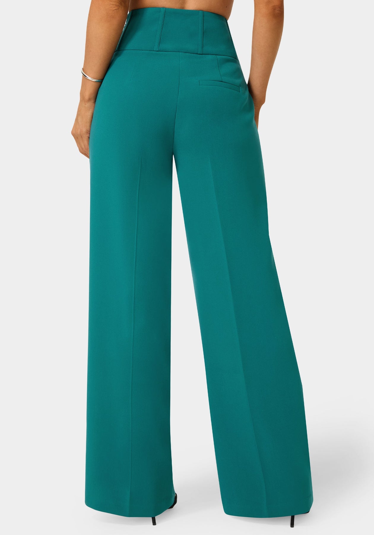 High-waist palazzo pants with a tailored silhouette; ideal for elegant occasions or sophisticated gatherings.