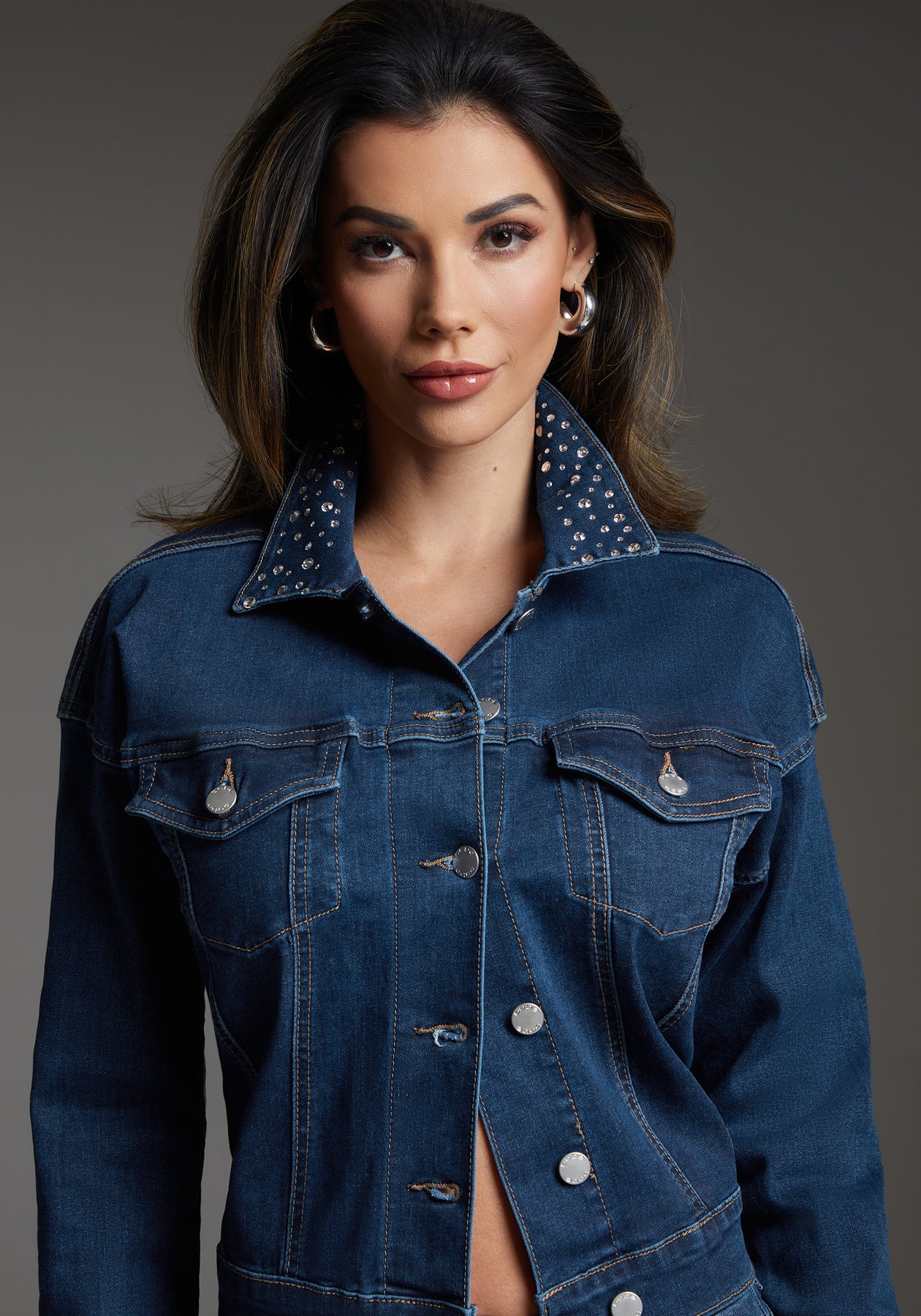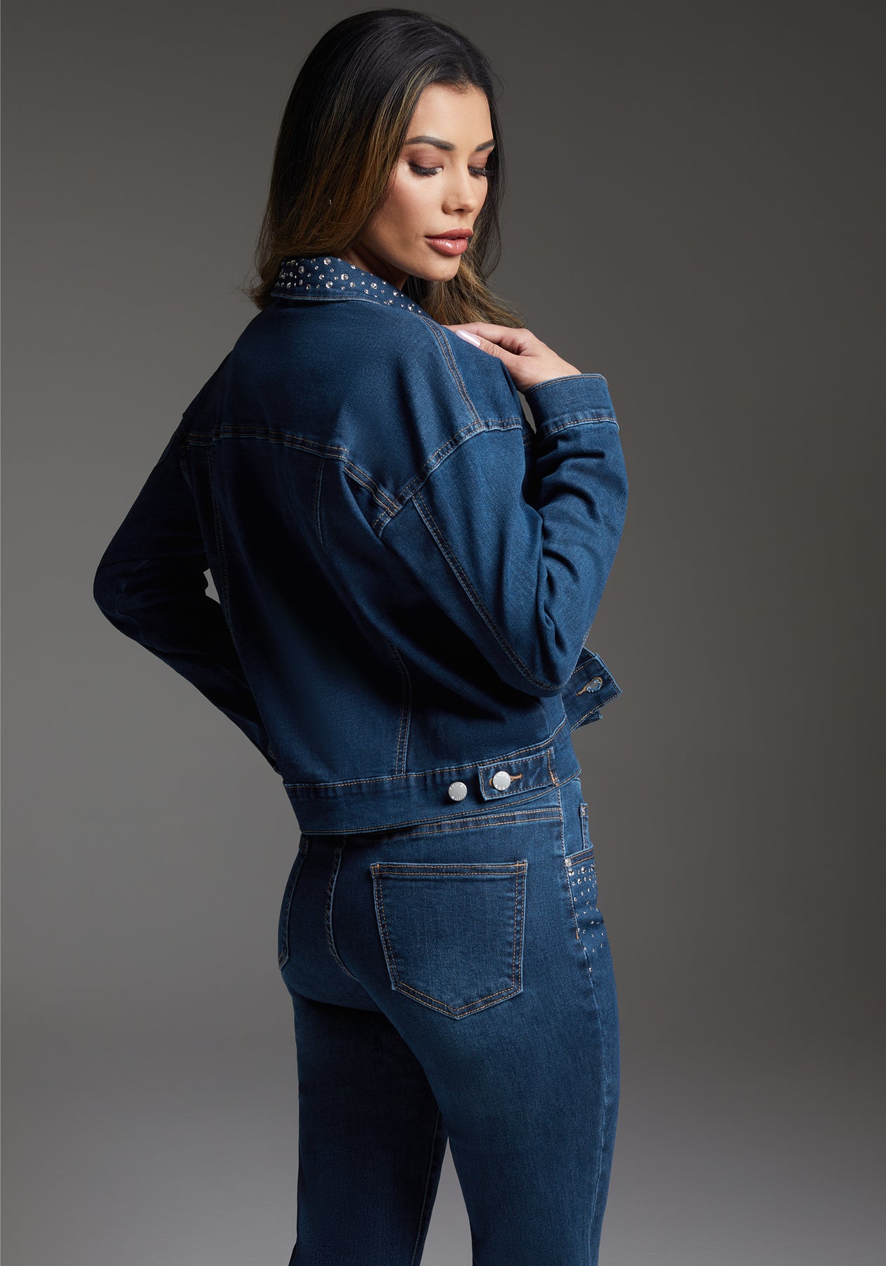 bebe Denim Jacket Embellished With Crystals by Swarovski