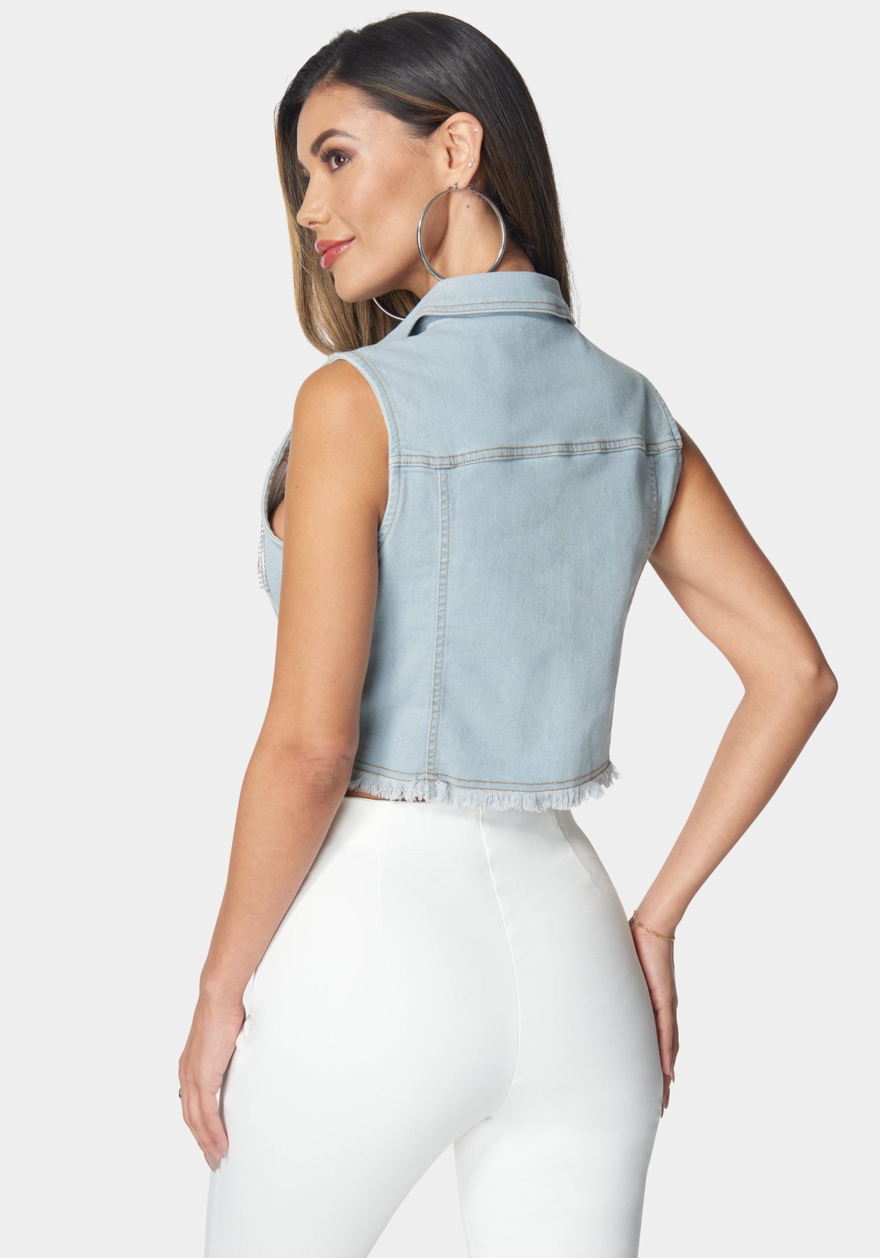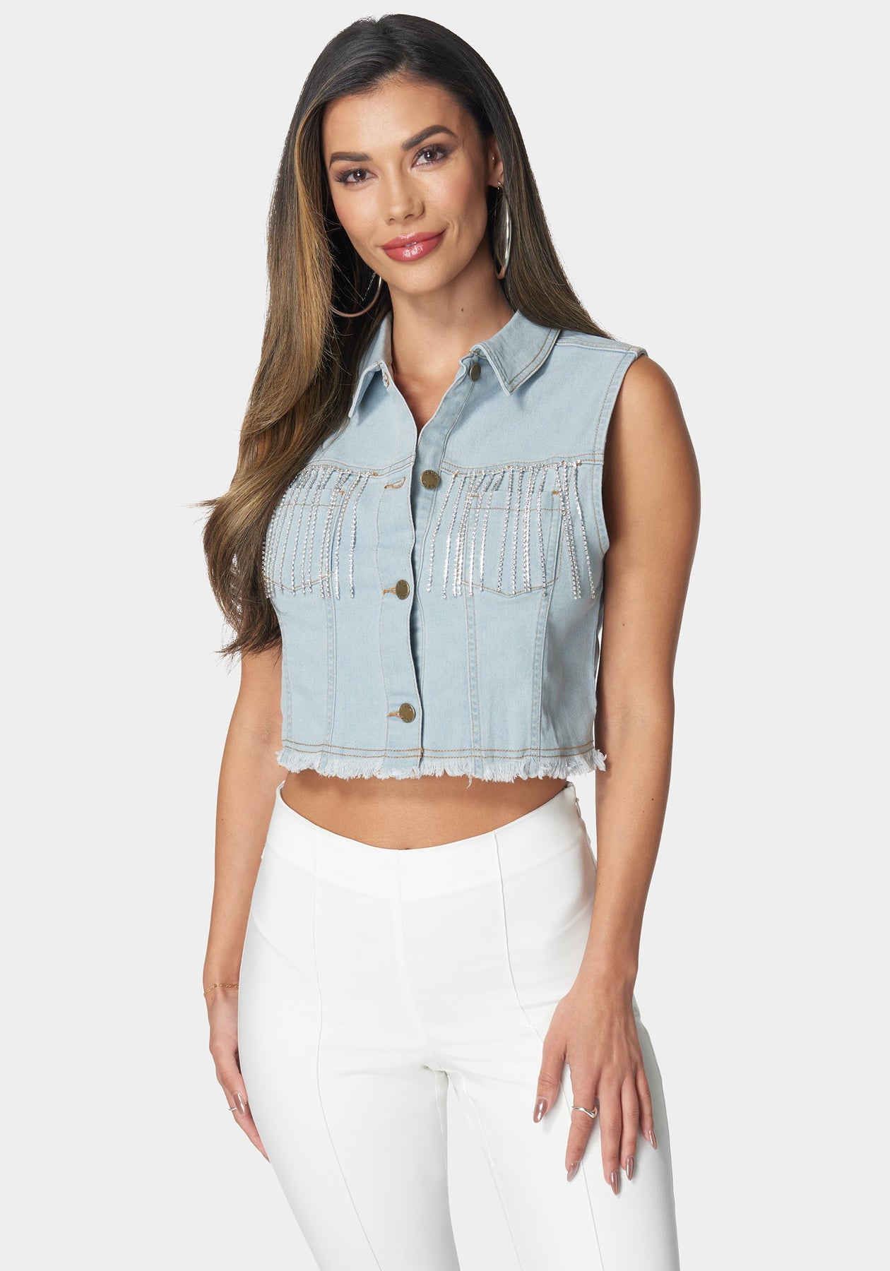 The Bebe Cropped Trucker Vest is a testament to bold self-expression. Perfect for layering over dresses at gallery openings or adding an edgy twist to daywear, it's versatility amplified.
