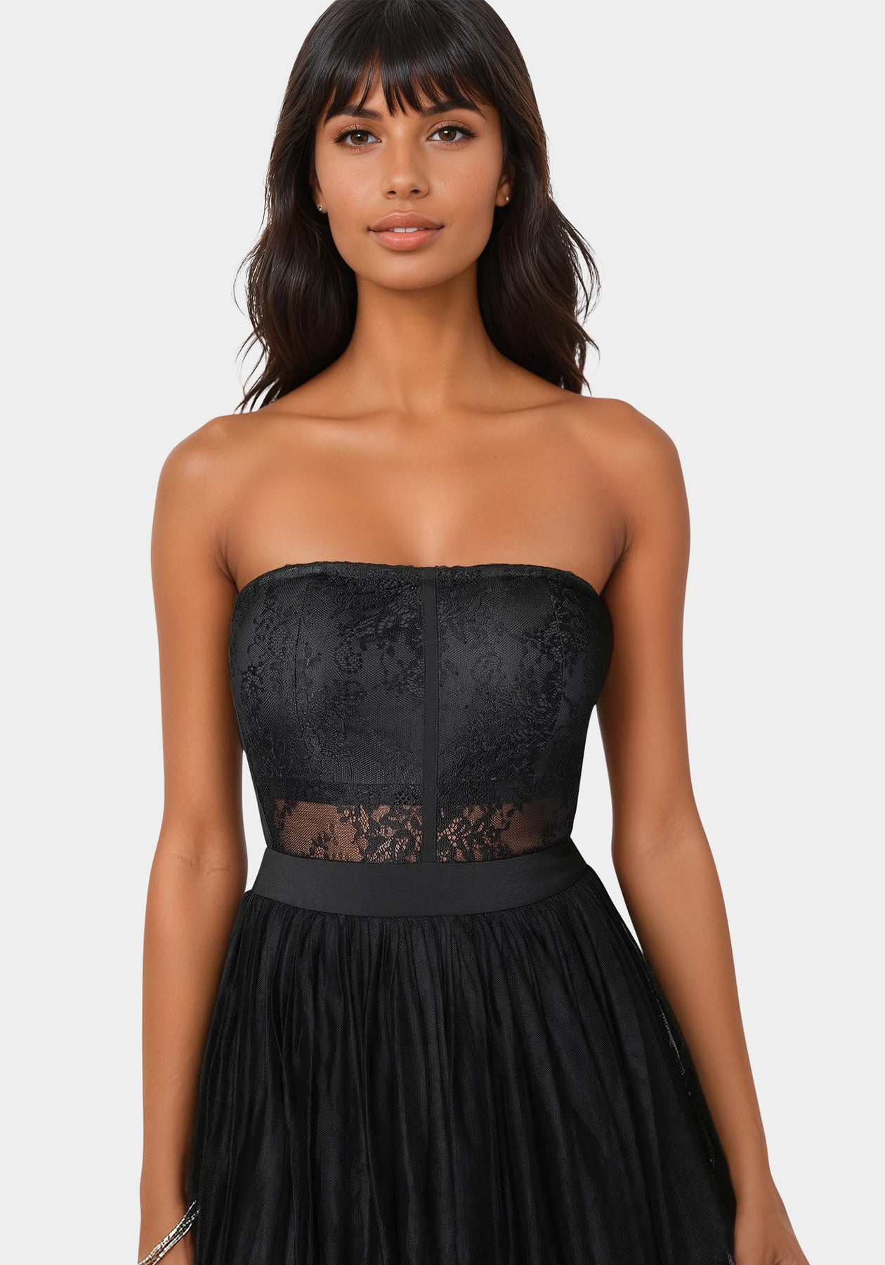 Experience romance and elegance with our tulle corset midi dress, featuring an ultra flattering silhouette perfect for weddings and special evenings.