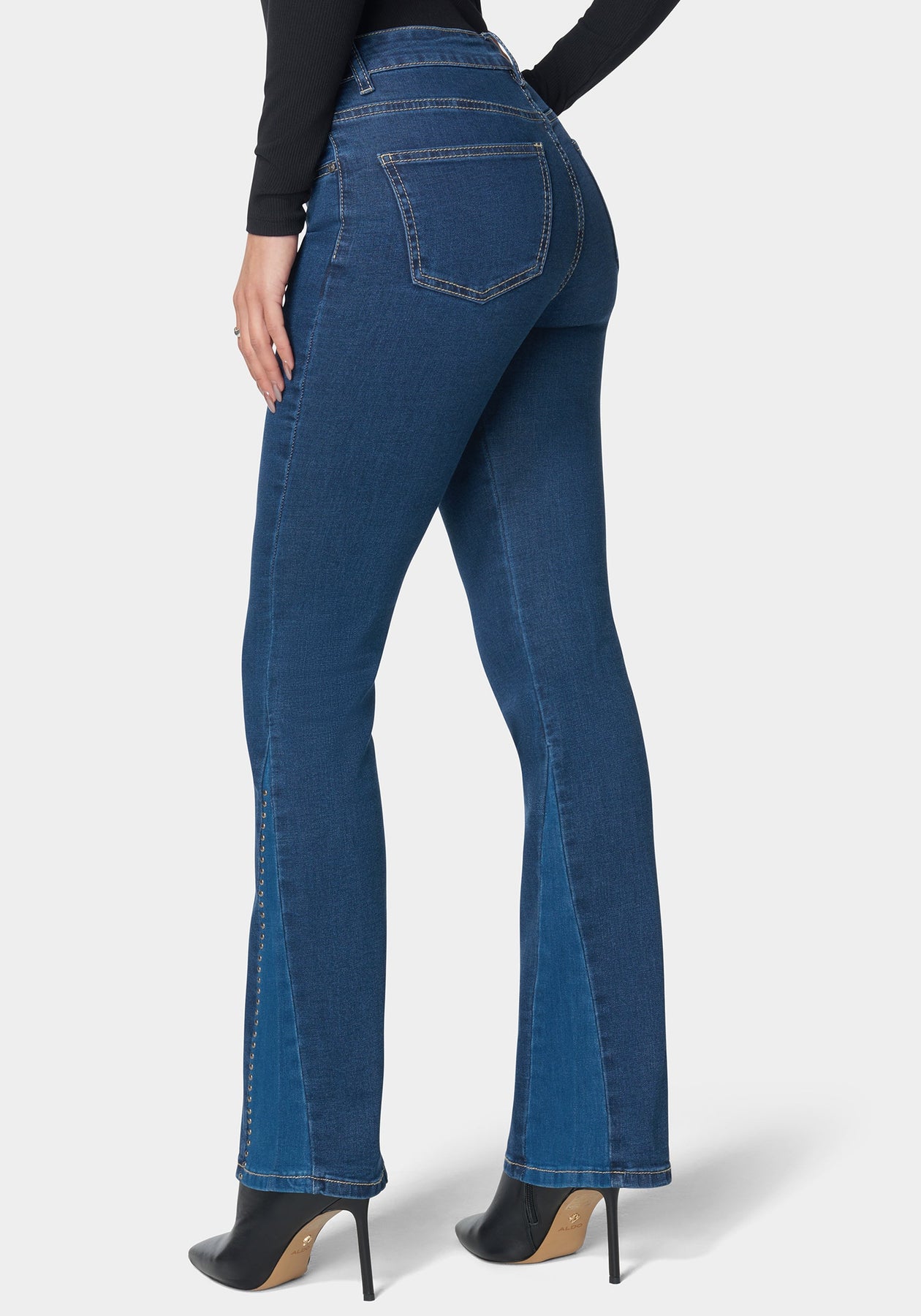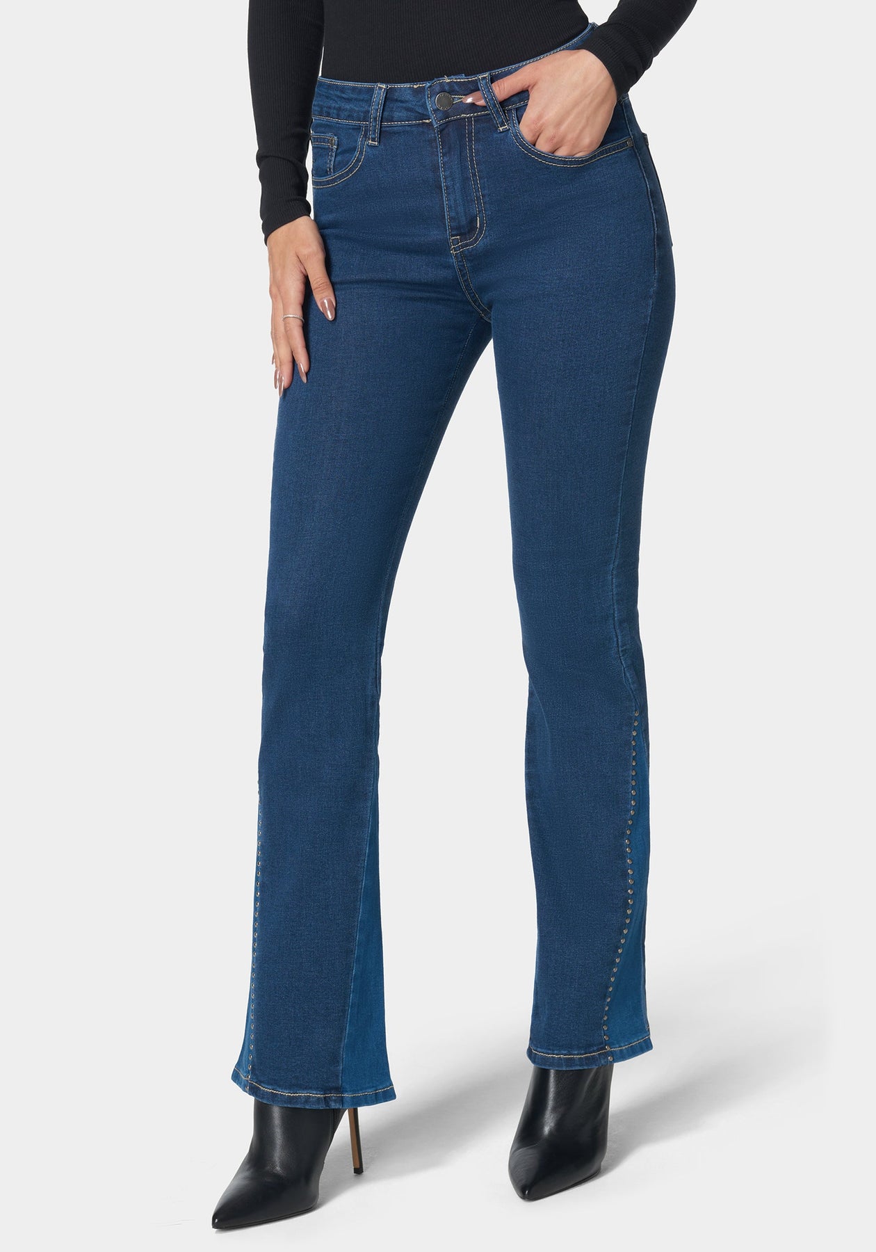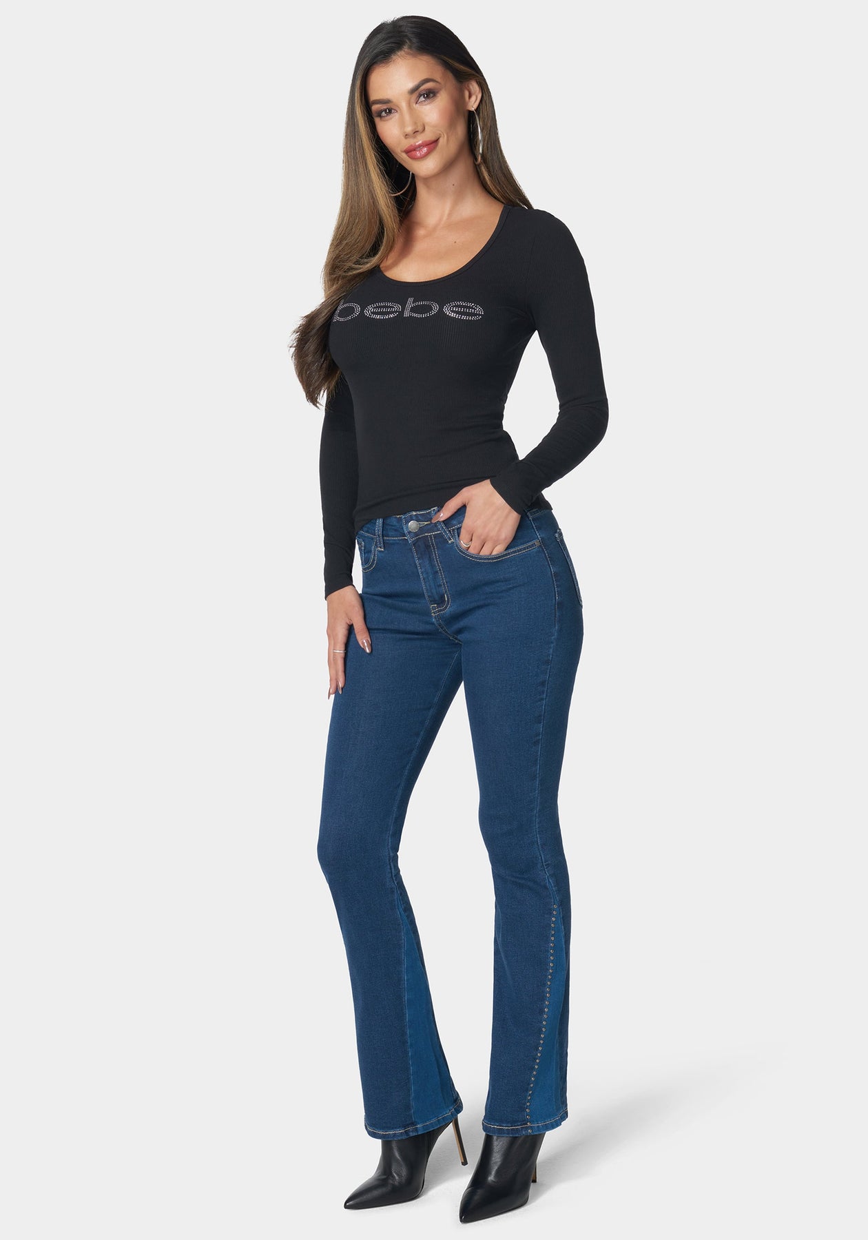 Steal the spotlight in the Bebe V-Flare Jean With Rhinestones. These jeans are a staple for concert nights or urban escapades, shining bright with every step you take.