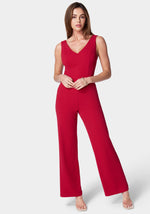 Slip into our chic V neck core jumpsuit in red for effortless elegance. This one-piece wonder features a flattering deep V neckline, a fitted waist, and wide-legged pants, creating a sleek and sophisticated silhouette. Perfect for evenings out, special occasions, or a statement workwear look, you'll love the versatility this jumpsuit offers.